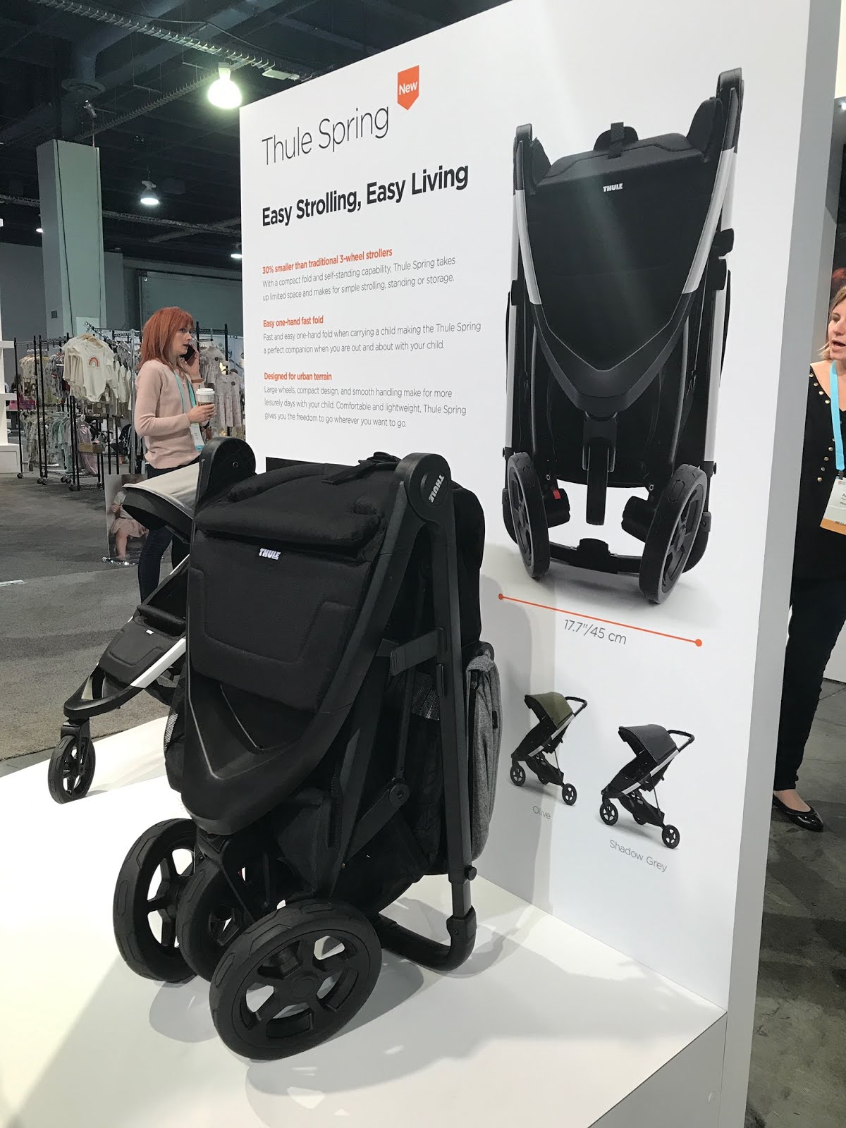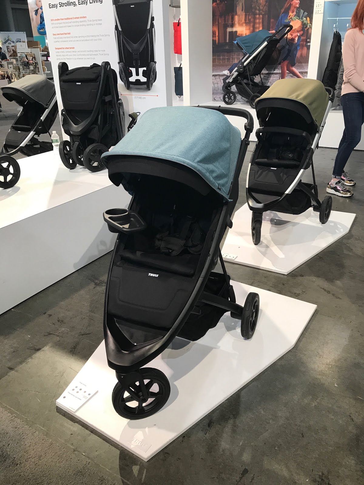 Easy Stroller, Easy Living. Thule will be bringing a brand new stroller in the new year. Starting at $359.95 the Thule Spring stroller weighs 22 lbs and holds up to 65 lbs. The Spring stroller when folded is 30% smaller than the Baby Jogger City Mini. That's really small!