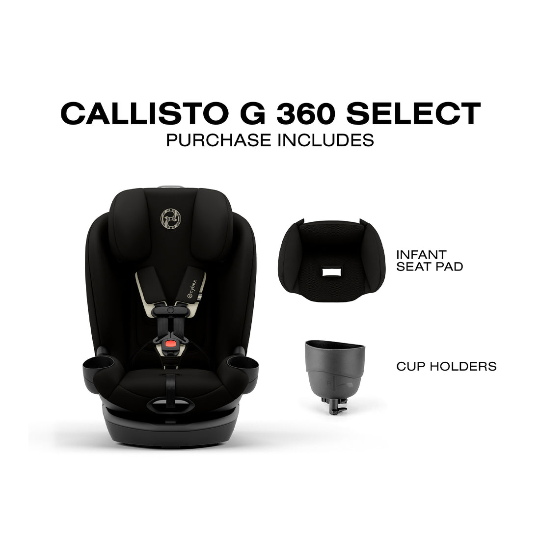 - 360° Rotation in Any Recline Position: Quickly rotate the Callisto G 360 Select toward the car door to lift your child in or out without straining your back. Designed for daily ease, this smart rotation works in multiple recline settings rear- or forward-facing.