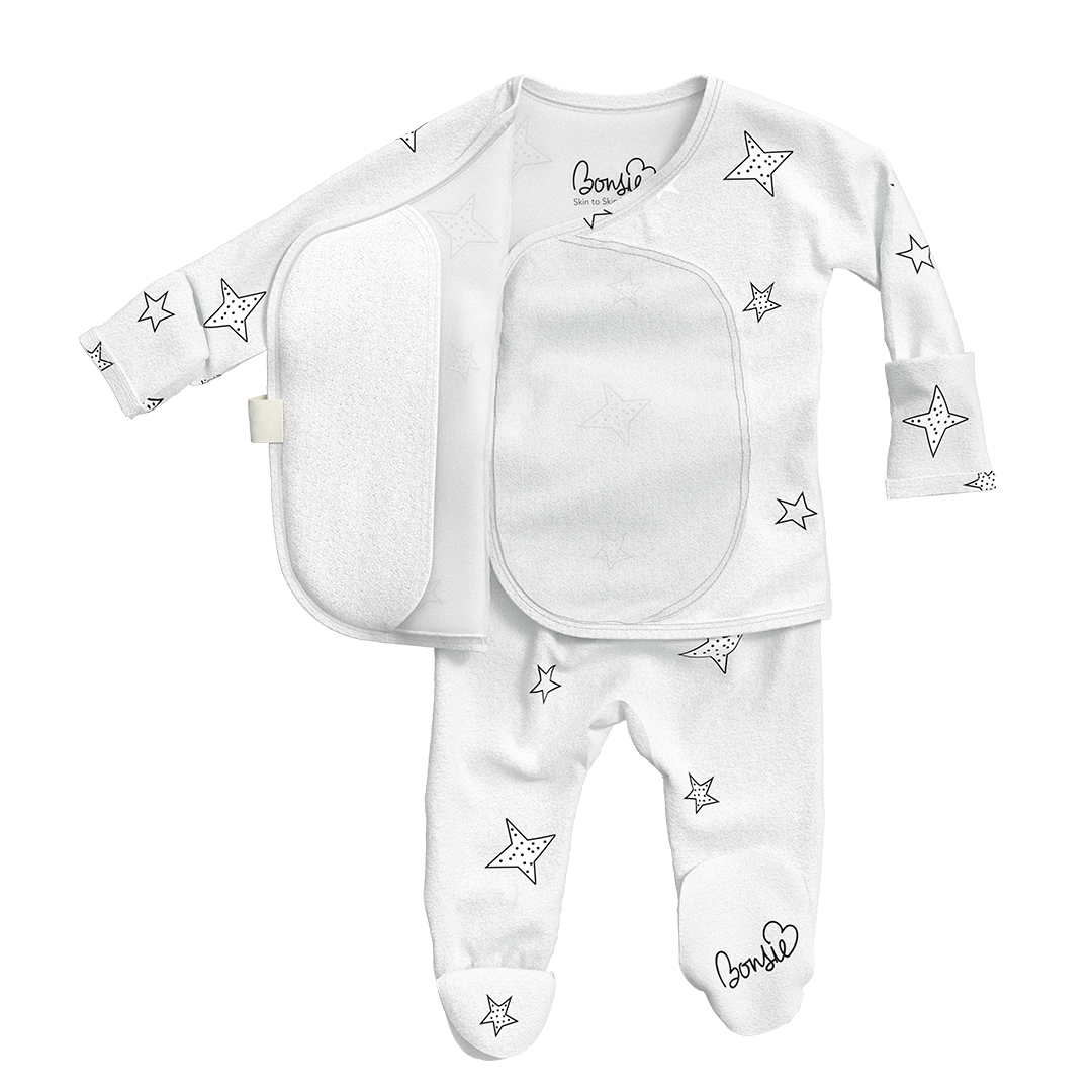Meet the Bonsie Footie—our bestselling, skin-to-skin superstar designed to make those first days (and nights) easier, cozier, and full of connection. Crafted from our signature ultra-soft, breathable fabric, this one-piece wonder features a wrap-front design that gives you instant access for skin-to-skin bonding—without taking the whole outfit off.