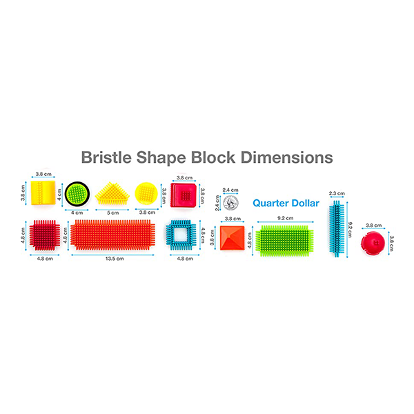 - PTB240 bristle shape block set has a different brightly colored piece which provides kid's endless building possibilities.
