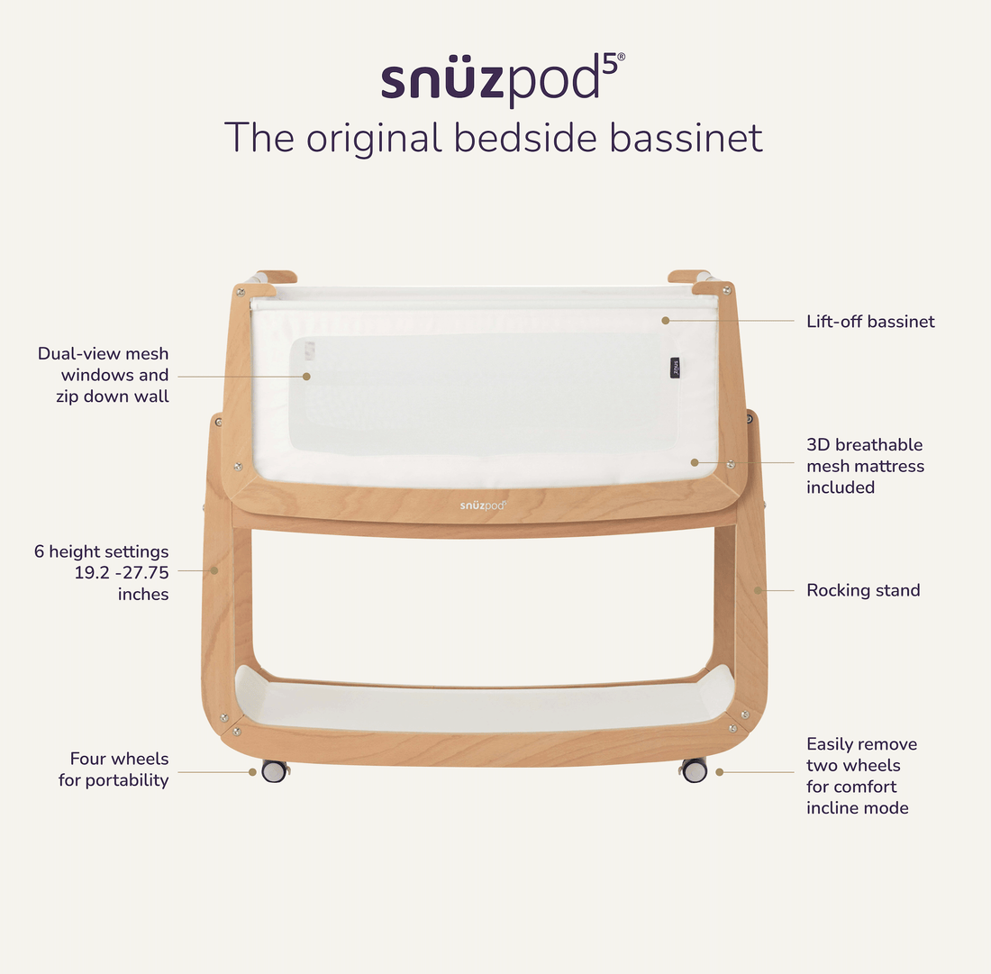 Sleep better, feed easier, and stay close to your baby with the original bedside bassinet trusted by parents worldwide — SnuzPod5.